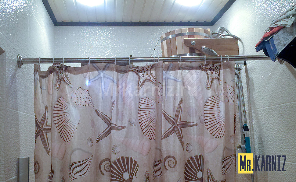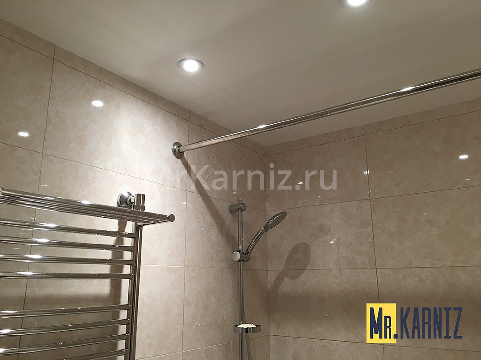 Они могут размещаться по внешним краям ванной, могут быть шире нее. Также по желанию карниз можно завести внутрь ванной.